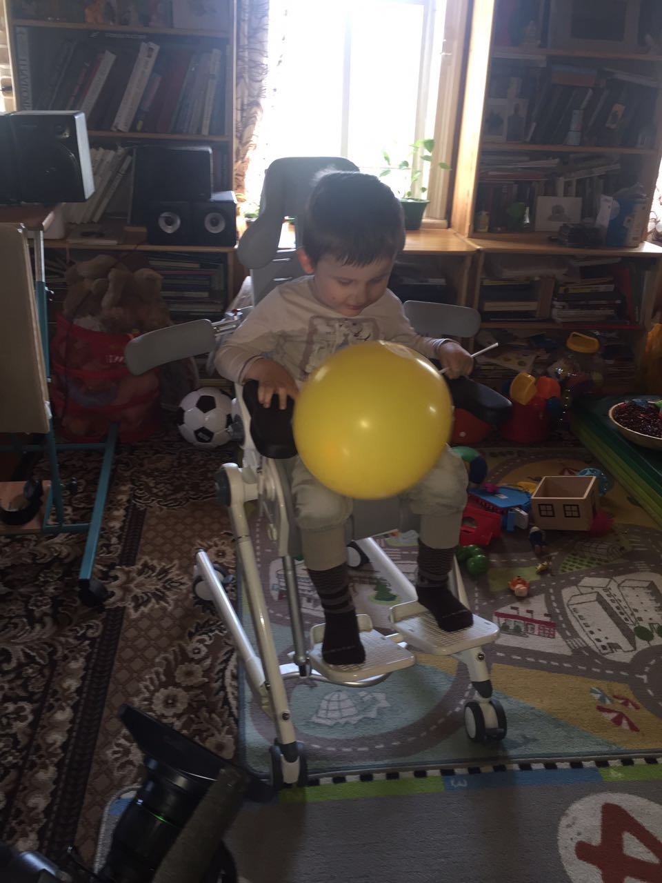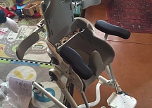 В своём возрасте мальчик сидит в подушках, немного ползает на четвереньках, учитсях ходить с помощью вертикализатора, а вот мыться мальчик не любит. Каждое купание ребенка даётся родителям очень сложно. Мальчику необходимы занятия со специалистами и специальное приспособление стул-кресло для ванны и туалета Flamingo, которое придает ребенку такое положение, чтобы его было легко мыть. Купание доставляет удовольствие всем. Именно с этим устройством Саша успешно польовался в реабилитационном центре Санкт – Петербурга. Но такие занятия проводятся 2 недели в год, а должны проходить регулярно и систематически. Семья ребенка мальчика многодетная и возможности самостоятельно приобрести оборудование у них просто нет.