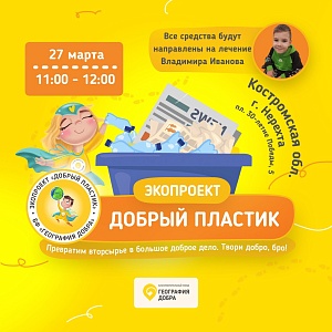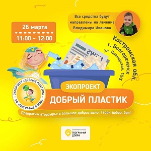20 марта в поселке Никольское Костромской области в рамках Экопроекта «Добрый пластик» состоялся Экологический мастер-класс, организованный Фондом «География Добра» при поддержке Костромского Отделения ПАО «Сбербанк».