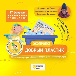 Все средства, полученные от переработки вторсырья, в полном объеме будут направлены на лечение подопечного фонда «География Добра» Григория Денисова. Грише 14 лет, его заветная мечта - научиться ходить самостоятельно, и врачи говорят, что это возможно.
