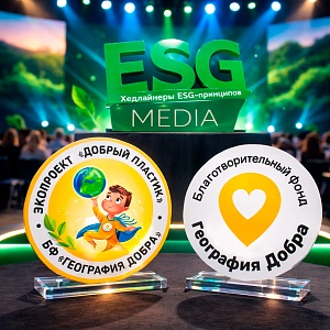 Фонд «География Добра» вошел в шорт-лист национальной премии «Хедлайнеры ESG-принципов» в номинации «Хедлайнер в реализации экологических инициатив» с Образовательно-экологическим проектом «Добрый пластик».
